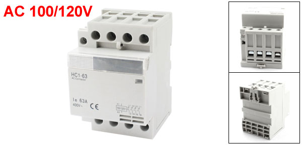 Product Name AC Contactor Model HC1-63 Rated Coil Voltage AC 100/120V Rated Current 63A Ue 400V Number of Poles 4 Mounting Type 35mm DIN Rail Mount Overall Size(Approx.) 60 x 55 x 67mm / 2.4" x 2.2" x 2.7"(L*W*T) Material Plastic, Electronic Parts Color Gray Net Weight 310g Package Content 1 x AC Contactor - Reviews