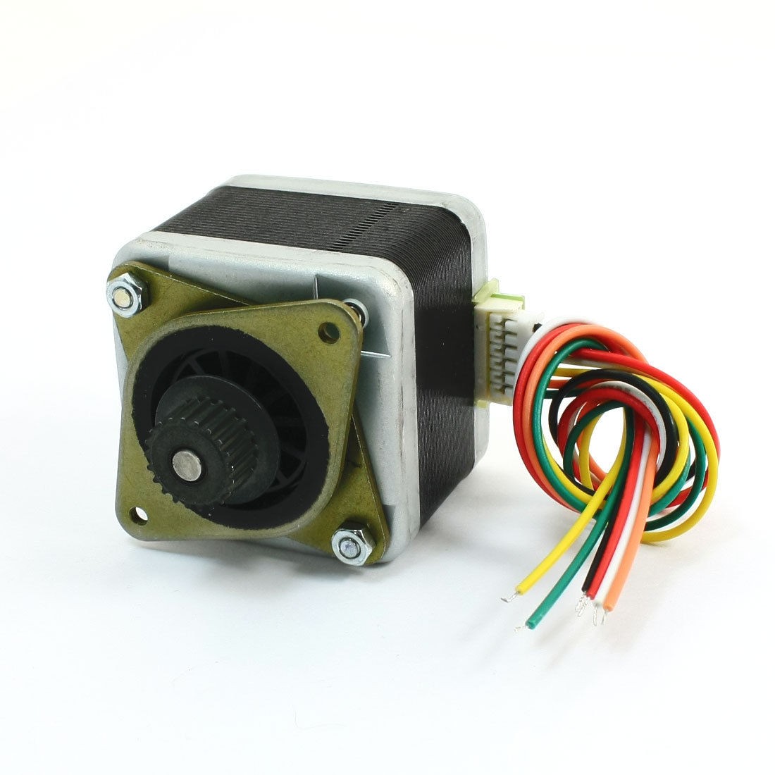 Product Name 42 Stepping Motor Step Angle 3.75° Rated Current 0.5A Voltage DC 5-30V Electrical Inductance 25mH Torque 3.5kg/cm Rated Speed 100-450RPM Shaft Diameter 4mm/ 0.16" Motor Part Size (Approx.) 42 x 42 x 52mm/1.7" x 1.7" x 2"(L*W*H) Cable Length 20cm / 7.8" Mouting Hole Dia 2.3mm/0.09" Material Metal, Plastic, Electronic Parts Color Black, Silver Tone Weight 250g Package Content 1 x 42 Stepping Motor
