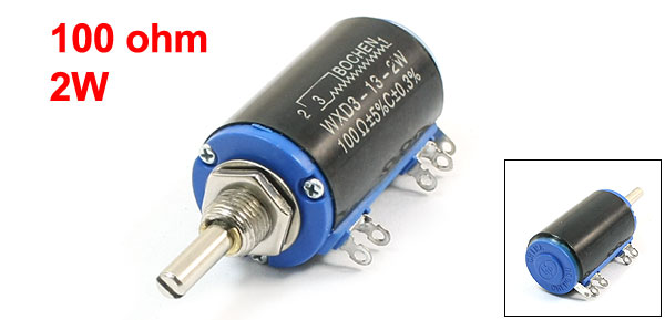 Product Name Wire Wound Potentiometer Model WXD3-13-2W Type Multi Turn Resistance Value 100 ohm Tolerance 5% Rating Power 2W Technology Wire Wound Terminals 3 Solder Lugs Body Size 36 x 21mm / 1.4" x 0.8"(H*D) Screw Thread Dia. 8mm / 0.31" Shaft Diameter 4mm / 0.16" Shaft Length 12mm / 0.47" Total Length 58mm / 2.3" Main Color Black, Blue Weight 24g Package Content 1 x Wire Wound Potentiometer - Reviews