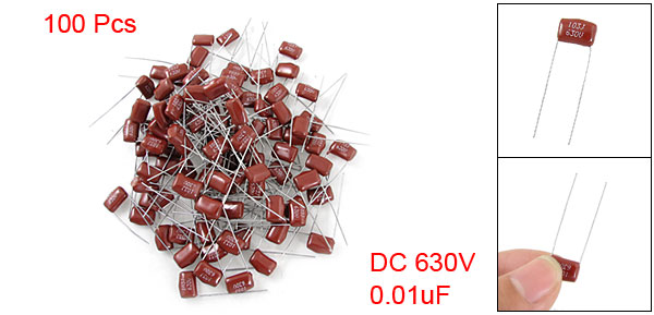 Product Name Metallized Polypropylene Film Capacitor Withstand Voltage DC 1000V Rated Voltage DC 630V Series CL21 Capacitance 0.01uF Capacitance Tolerance ±5% Lead Spacing 10mm / 0.394" Lead Diameter 0.5mm / 0.02" Total Size(Exclude Lead) 1.1 x 0.8 x 0.47cm / 0.4" x 0.3" x 0.2"(L*W*T) Weight 64g Main Color See the Picture Package Content 100 Pcs(±2%) of Metallized Polypropylene Film Capacitor - Reviews