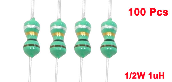 100 Pcs 1/2 Watt 1uH 10% Axial Leads Color Ring Fixed Inductors