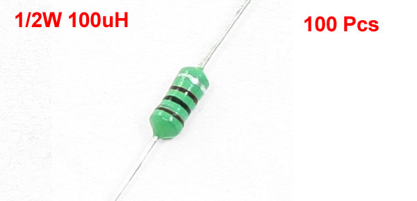 100 Pcs 1/2W 100uH 10% Axial Lead Color Ring Inductors