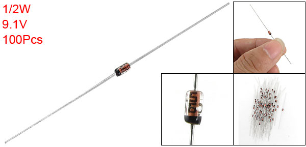 Product Name Zener Diodes Rating Power 1/2 W Zener Voltage DC 9.1V Size(Not Include Leads) 0.36 x 0.18cm / 0.142" x 0.071"(L*D) Leads Dia(Approx) 0.04cm / 0.016" Overall Length(Approx) 6cm / 2.4" Color As Picture Show Weight 12g Package Content 100(±2%) Pcs of Zener Diodes - Reviews