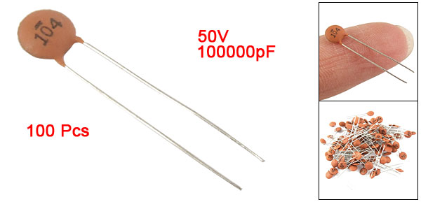 100 Pcs 100000pF 50V Low Voltage Ceramic Disc Capacitors
