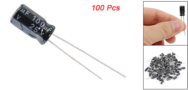 100 Pcs 100uF 25V Volt Radial Lead Electrolytic Capacitor