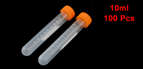 Product Name Centrifuge Tube Material Plastic Capacity 10ml Overall Size (Approx.) 12 x 2cm/ 4.7" x 0.8" (L*D) Color Clear White, Orange Net Weight 627g Pacakge Content 100(± 2%) x Centrifuge Tube