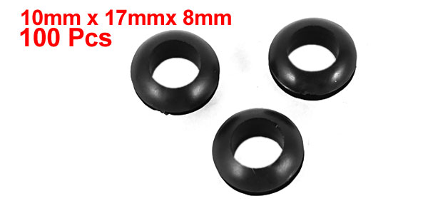 Product Name Rubber Wiring Grommet Inner Diameter 10mm/0.4" Outer Diameter 17mm/0.7" Thickness 8mm/0.3" Materials Rubber Color Black Net Weight 74g Package Content 100(±2%) x Rubber Wiring Grommets - Reviews