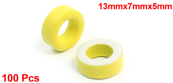 100 Pcs 13mmx7mmx5mm Power Transformer Toroid Cores Ferrite Ring Magnet Yellow