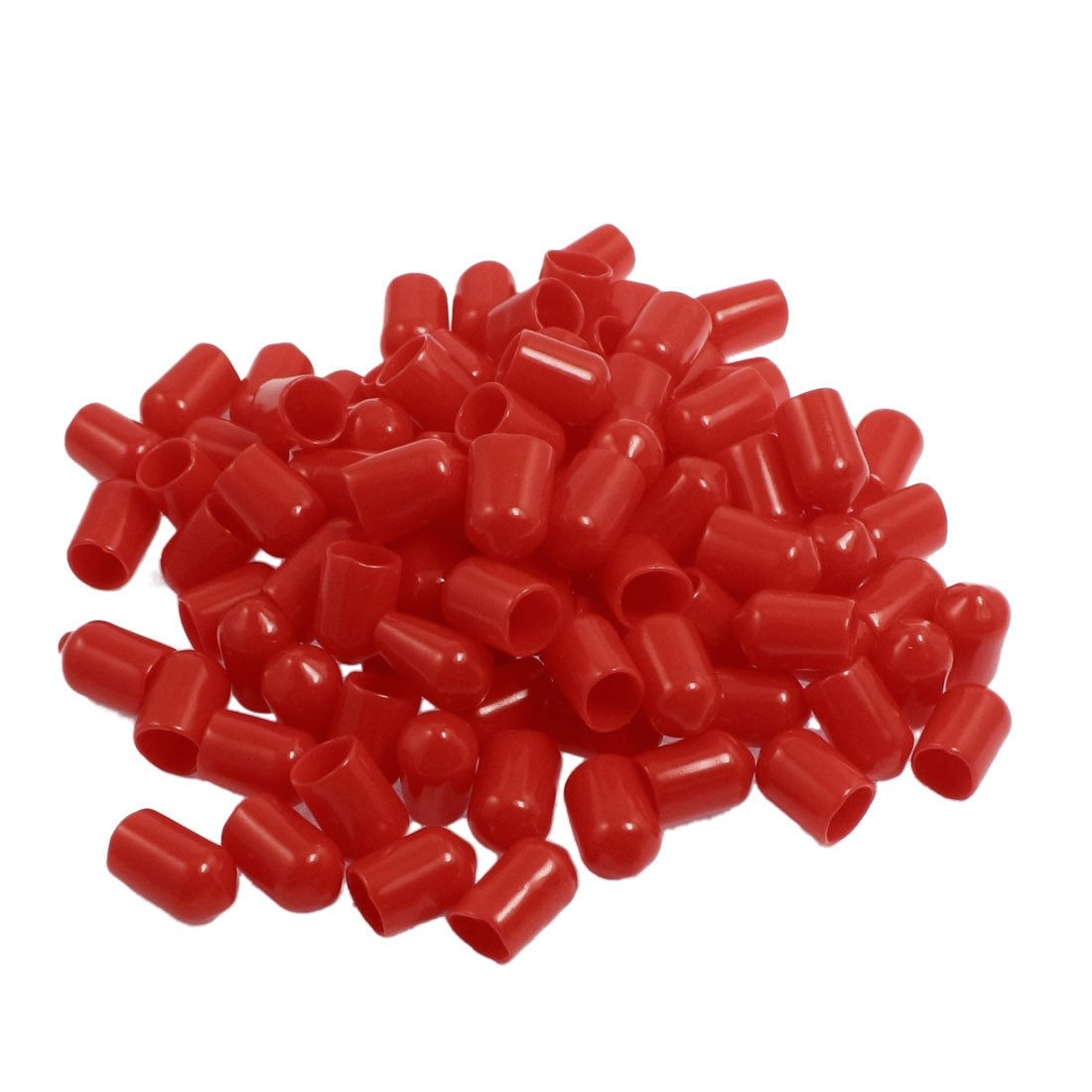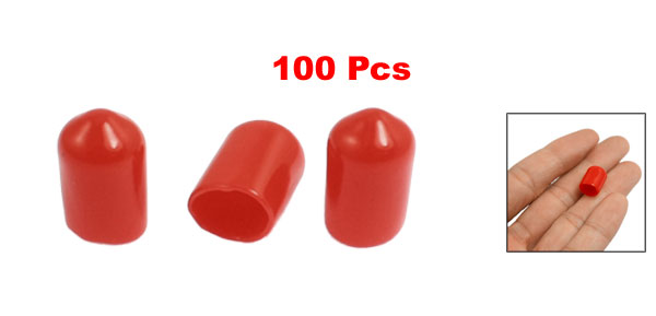 100 Pcs 14mm Height 8mm Inner Dia Round Tip Red PVC Insulated End Caps