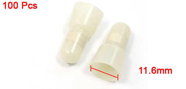 Product Name Closed End Wire Connector Model CH8 Tin-plated Tube Inner Dia 6mm/ 0.24" Tin-plated Tube Length 14mm/ 0.55" Inner Dia 11.6mm/ 0.45" Total Size (Each) 13.4 x 25mm/ 0.34" x 1" (D*L) Color Beige Material Plastic, Metal Weight 98g Package 100(± 2%) x Closed End Wire Connector - Reviews