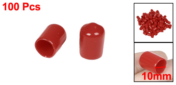 100 Pcs 17mm Height 10mm Inner Dia Round Tip Red PVC Insulated End Caps