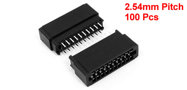 Product Name IDC Pin Header Position 10 Pin Number 20 Row 2 Mounting Angle Straight Pin Pitch 2.54mm/0.1" Pin Length 4mm/ 0.16" Total Size 32 x 9.5 x 19mm/ 1.26" x 0.37" x 0.75" ( L*W*H) Material Plastic, Metal Color Black, Silver Tone Net Weight 488g Package Content 100 (+/-2%) x Straight IDC Pin Headers - Reviews
