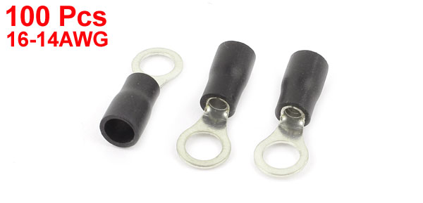 100 Pcs 2-5S Insulated Wire Connector Ring Crimp Terminal Black 16-14AWG