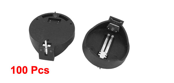 Details100 Pcs 2 Pins CR2032 CR2025 Coin Cell Button Battery Socket Holder Case Black  Product Name Button Battery Holder Fit Battery Model 1 x CR2032 CR2025(Not Included Here) Material Plastic, Metal Body Size 22 x 9mm / 0.9" x 0.35"(Max. D*H) Inner Diameter 20mm / 0.8" Pin Distance 20mm / 0.8" Color Black Net Weight 173g Package Content 100(±2%) x Button Battery Holder