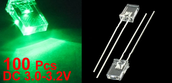 100 Pcs 2 x 5 x 7mm Rectangle Head Green LED Light Emitting Diodes
