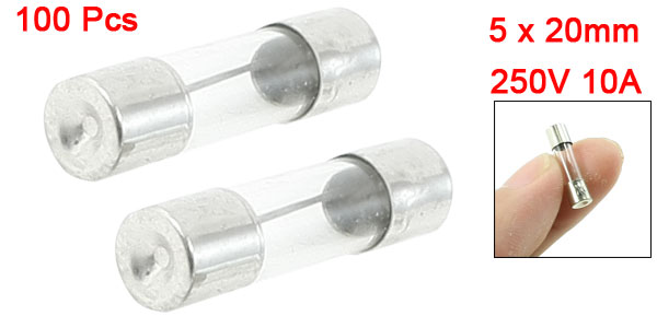 Product Name Glass Tube Fuses Quantity 100±2% Pcs Features Fast Blow(F) Low Breaking Capacity(L) Rated Voltage 250V Rated Current 10A Total Size 5 x 20mm/ 0.2" x 0.8" (D*L) Material Glass, Metal Color Silver Tone, Clear Weight 55g Package 100 x Glass Tube Fuses - Reviews