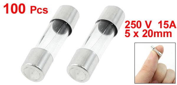 100 Pcs 250 Volts 15Amp Fast Blow Type Glass Tube Fuses 5 x 20mm