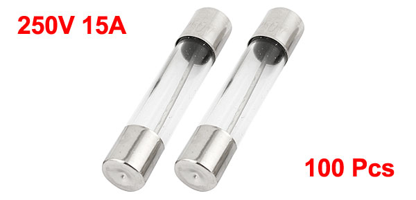 100 Pcs 250 Volts 15Amp Fast Blow Type Glass Tube Fuses 6mm x 30mm