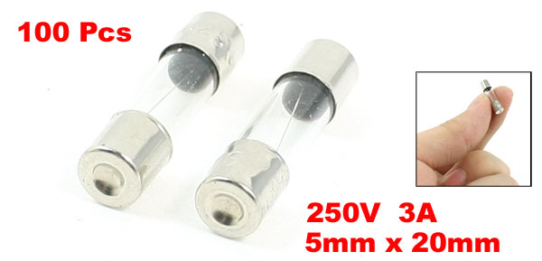 Product Name Glass Tube Fuses Quantity 100±2% Pcs Features Fast Blow(F) Low Breaking Capacity(L) Rated Voltage 250V Rated Current 3A Total Size 5 x 20mm/ 0.2" x 0.8" (D*L) Material Glass, Metal Color Silver Tone, Clear Weight 64g Package 100 x Glass Tube Fuses - Reviews
