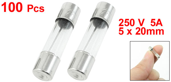 Product Name Glass Tube Fuses Quantity 100±2% Pcs Features Fast Blow(F) Low Breaking Capacity(L) Rated Voltage 250V Rated Current 5A Total Size 5 x 20mm/ 0.2" x 0.8" (D*L) Material Glass, Metal Color Silver Tone, Clear Weight 66g Package 100 x Glass Tube Fuses - Reviews