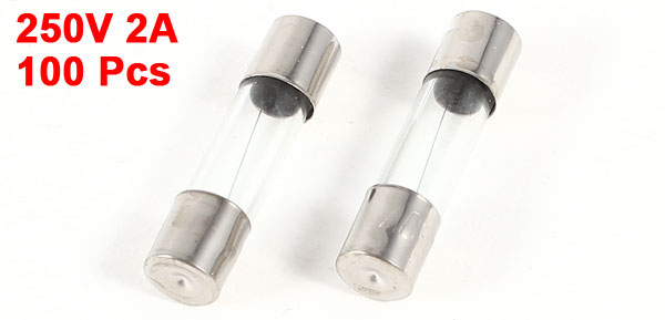 100 Pcs 250V 2A Electronic Fast Blow 5mm Dia 20mm Length Glass Fuse Tube