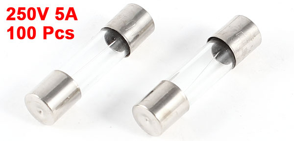 100 Pcs 250V 5A Overcurrent Protection Glass Fuse Tube 5mm x 20mm