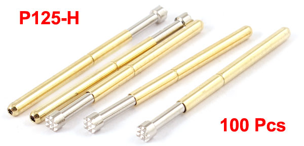 Product Name Test Probe Pin Model No. P125-H Tip Type 9-Point Plum Tip Tip Dia(Approx) 2.5mm/ 0.1" Barrel Dia(Approx) 2.02mm/ 0.08" Pin Pole Dia 1.7mm/0.07" Overall Length(Approx) 33.35mm/ 1.31" Drill Hole Dia 2.4mm Fit Pin Cap Dia 2.36mm Test Distance Min 3.18mm Material Metal Color Gold Tone, Silver Tone Weigth 52g Package Content 100(±2%) Pcs x Test Probe Pin - Reviews