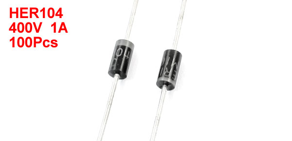 Product Name High Efficiency Rectifier Diodes Model HER104 Max Repetitive Peak Reverse Voltage 400V Average Forward Current 1A Lead Size(Each Side) 0.7 x 27mm/0.08" x 1"(D*L) Body Dimension 2.5 x 5mm/0.1" x 0.2"(D*L) Color As Picture Shown Weight 26g Package Content 100Pcs(±%2) x High Efficiency Rectifier Diodes - Reviews