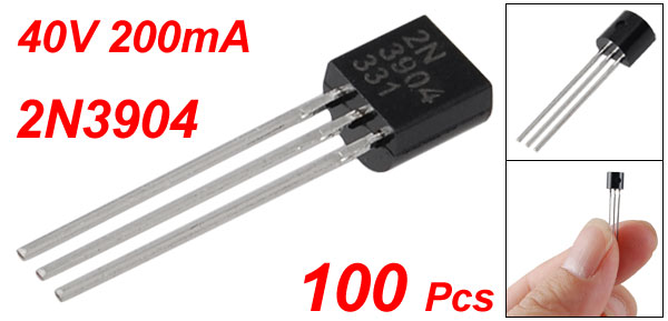 Product Name NPN Transistor Model 2N3904 Quantity 100 ± 2% pcs Collector Base Voltage 60V Collector Emitter Voltage 40V Emitter Base Voltage 6V Collector Current(Continuous) 200mA Collector Power Dissipation 350mW Pin Size 14 x 0.5mm/ 0.551" x 0.019" ( L* D) Body Dimension 4 x 3 x 4mm/ 0.16" x 0.12" x 0.16" (L*W*T) Pitch 1.5mm/0.059" Main Color Black Weight 22g Package Content 100± 2% x NPN Transistors - Reviews