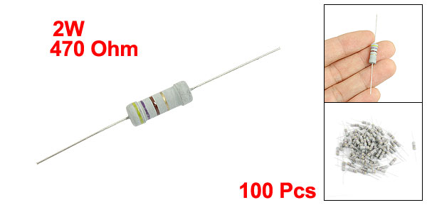 Product Name Carbon Film Resistor Quantity 100 Pcs (±2%) Lead Type Axial Power Rating 2W Resistance Tolerance ± 5% Resistance Value 470 Ohm Body Size 15 x 5mm/ 0.59" x 0.2" (L*D) Leads Dia (Approx.) 0.5mm / 0.02" Total Length (Approx.) 60mm / 2.4" Weight 85g Package Content 100 x Carbon Film Resistors - Reviews