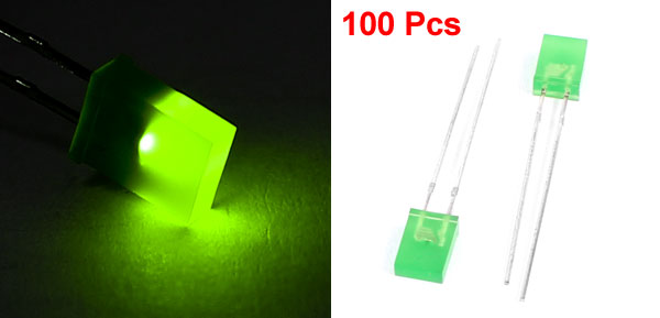 100 Pcs 2x5x7mm Rectangle Green Diffused Light Emitting Diode LED Lamp Bulb