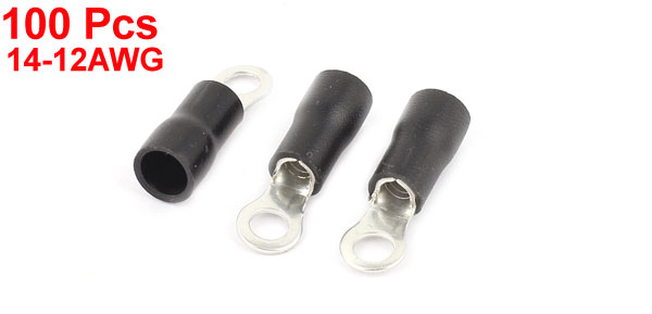 100 Pcs 3.5-4S Insulated Wire Connector Ring Crimp Terminal Black 14-12AWG