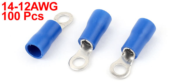 100 Pcs 3.5-4S Insulated Wire Connector Ring Crimp Terminal Blue 14-12AWG