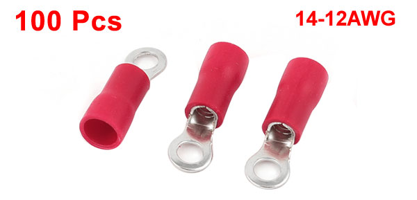 100 Pcs 3.5-4S Insulated Wire Connector Ring Crimp Terminal Red 14-12AWG