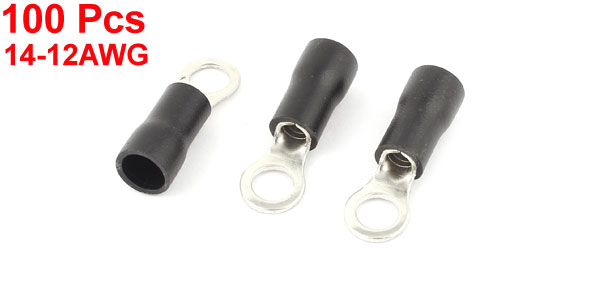 100 Pcs 3.5-5S Insulated Wire Connector Ring Crimp Terminal Black 14-12AWG