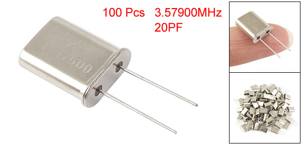 Product Name Crystal Oscillator Quantity 100±2% Pcs Frequency 3.57900MHz Frequency Tolerance ±20ppm Load Capacitance 20PF Frequency Stability ± 20ppm Mounting Type DIP No. of Pins 2 Pin Length 13mm Size(Each) 26 x 11 x 4mm/ 1" x 0.43" x 0.16" (L*W) Weight 100g Package Content 100 x Crystal Oscillator - Reviews