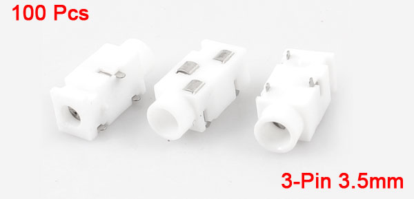 100 Pcs 3-Pin 3.5mm Female Headphone Stereo Audio Socket Adapter White