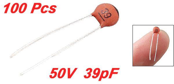 Product Name Ceramic Disc Capacitor Features Low Voltage Withstand Voltage DC 50V Capacitance 39pF Capacitance Tolerance ± 10% Lead Pitch Spacing 2.5mm / 0.1'' Body Dimension(Each) 3 x 1.5mm / 0.1" x 0.05"(D*T) Weight 6g Color As Picture Show Package Content 100 (± 2%) x Ceramic Disc Capacitors - Reviews