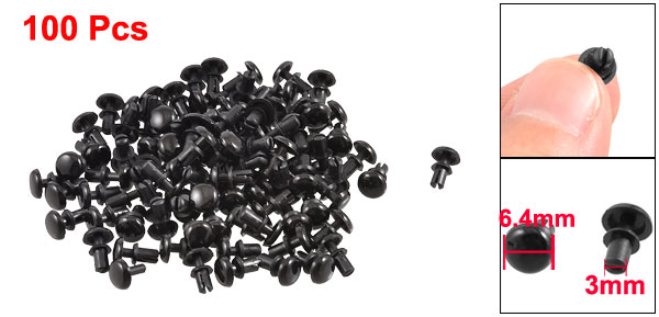 100 Pcs 3mm Bottom Dia Nylon Removable Push Head Fasteners Rivets Black