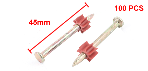 Product Name Power Hammer Pin Color Gold Tone, Red Material Metal, Plastic Tip Diameter 1mm / 0.04" Shank Diameter 3mm / 0.12" Overall Size 45 x 7mm / 1.8" x 0.27" (L*Max. D) Weight 359g Package Content 100(±2%) x Power Hammer Pins - Reviews