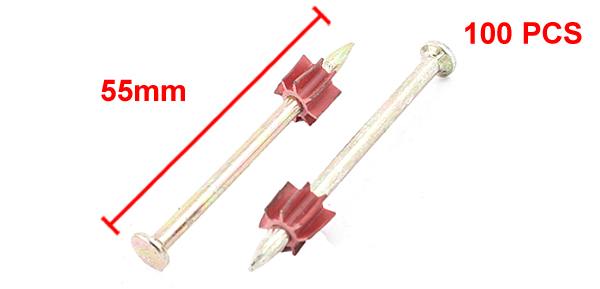 Product Name Power Hammer Pin Color Gold Tone, Red Material Metal, Plastic Tip Diameter 1mm / 0.04" Shank Diameter 3mm / 0.12" Overall Size 55 x 7mm / 2.2" x 0.27" (L*Max. D) Weight 406g Package Content 100(±2%) x Power Hammer Pins - Reviews
