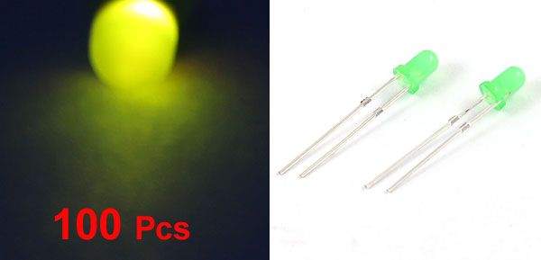 100 Pcs 3mm Diameter Head Green LED Light Emitting Diodes