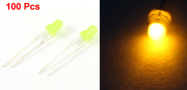 100 Pcs 3mm Diameter Head Yellow LED Light Emitting Diodes