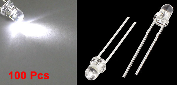 100 Pcs 3mm Round Head 2Pin White Light Emitting Diode LED Bulb