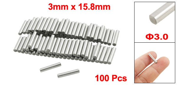 100 Pcs 3mm x 15.8mm Silver Tone Dowel Pins Rod Fastener Elements