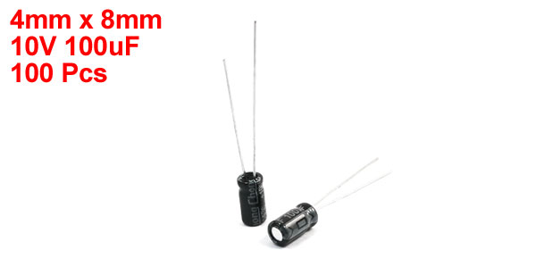 100 Pcs 4 x 8mm Radial Lead Soldering Electrolytic Capacitor 10V 100uF