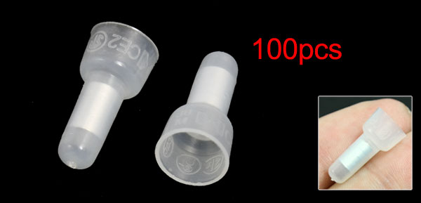 Product Name Closed End Wire Connector Model CE2 Tolerance ± 5% Pcs Voltage Rating AC 300V (Max.) Wire Range Square 12.56mm2 Inner Diameter 4 x 7mm Tin-plated Tube Length 7mm/ 0.27" Size (Each) 9 x 19mm/ 0.35" x 0.75" (D*L) Color Gray, Clear White Material Nylon, Metal Weight 31g Package 100 x Closed End Wire Connector - Reviews