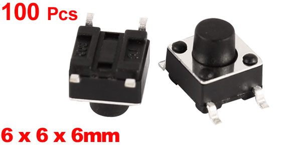 100 Pcs 4Pin SMD Type Momentary Tactile Tact Push Button Switch 6X6X6mm