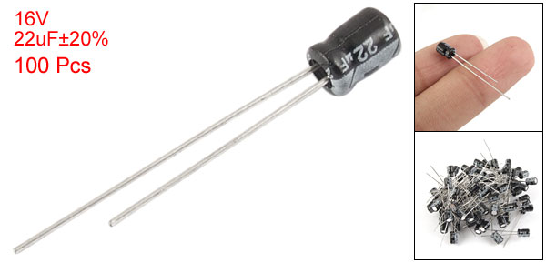 Product Name Aluminum Electrolytic Capacitor Type Radial Lead Maximum Temperature 105°C Withstand Voltage 16V Capacitance 22uF Capacitance Tolerance ±20% Body Size 4 x 5mm / 0.16'' x 0.2'' (D*L) Lead Spacing 1.5mm / 0.059'' Lead Length 25mm / 0.98'', 19mm / 0.75'' External Material Aluminum Weight 16g Color As Picture Shown Package Content 100 Pcs (±2%) x Electrolytic Capacitors - Reviews