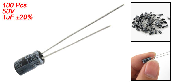 Product Name Aluminum Electrolytic Capacitor Type Radial Lead Maximum Temperature 105°C Voltage 50V Capacitance 1uF Capacitance Tolerance ±20% Body Size 4 x 7mm/0.16'' x 0.28'' (D*L) Lead Spacing 2mm/0.08'' Lead Length 25mm/1'', 20mm/ 0.79'' External Material Aluminum Weight 23g Color As Picture Shown Package Content 100 Pcs (±2%) x Electrolytic Capacitors - Reviews
